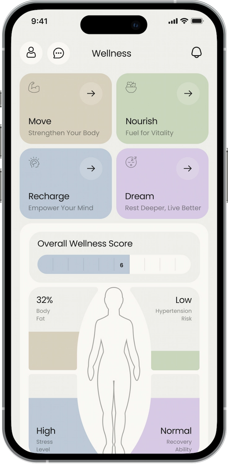 In partnership with world-class brands like Calm, FitOn, Meditopia, Technogym, and others, we bring you the first-ever wellness smart home and 360° wellness app.